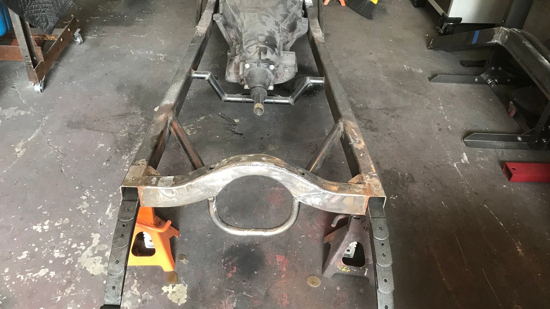 And the welding process itself was designed to maintain the chassis geometry. “Once I got the frame rails straight,” he explained, “I tack welded them to the table before I welded any chassis joints.” Mike also followed a welding tip he heard on a TV show featuring the Ekstensive Metal Works shop. They explained that you should weld the top and bottom beads of a joint first, as the side welds were more likely to cause warping. And of course, he kept checking the dimensions throughout the welding process.