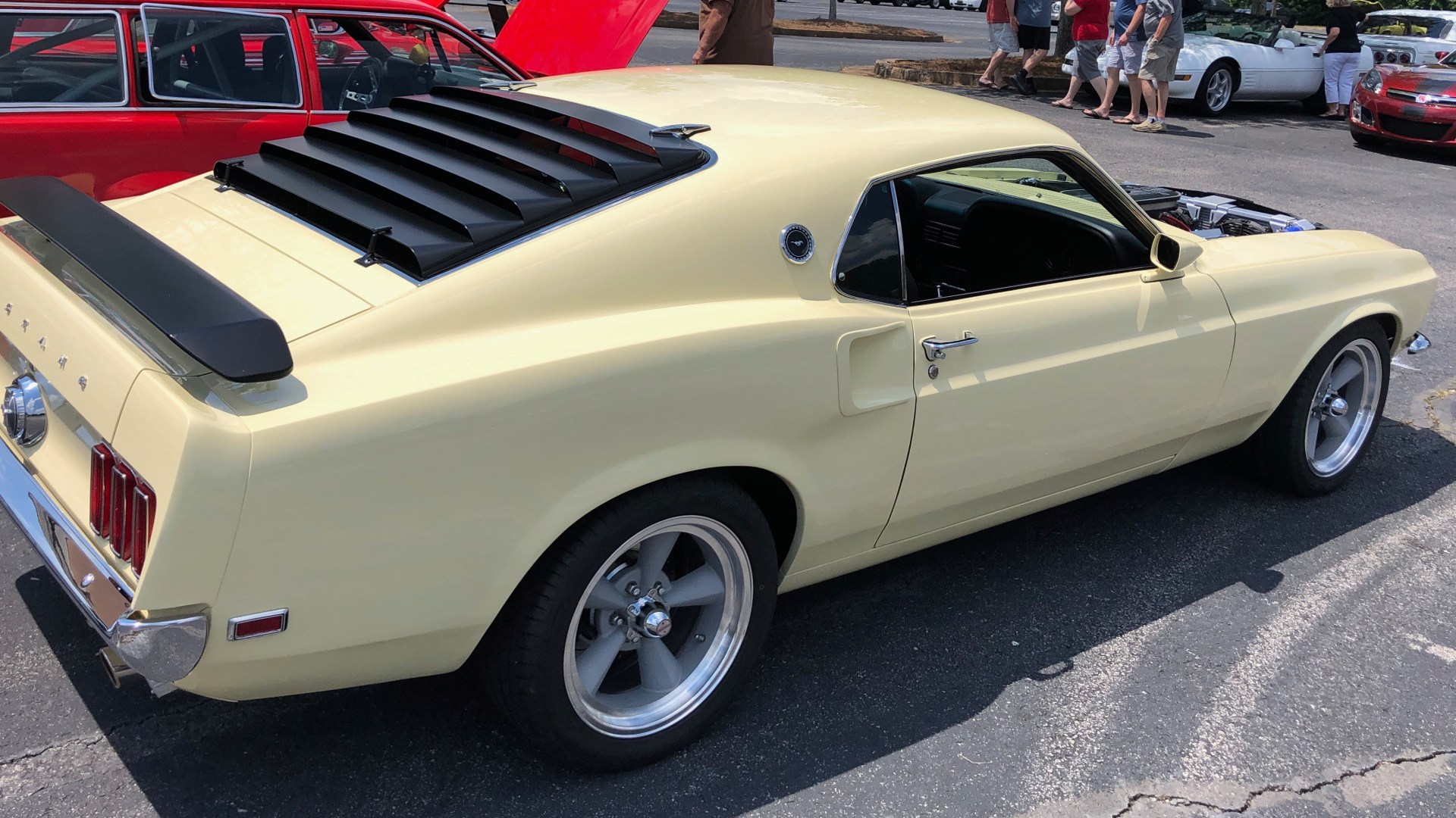 The classic Mach 1 rear window louvers and front and rear spoilers are there. Right now, Huey and Rhonda are enjoying the Meadowlark Yellow paint without the Mach 1 striping. He says he plans on putting those on “sooner or later.”