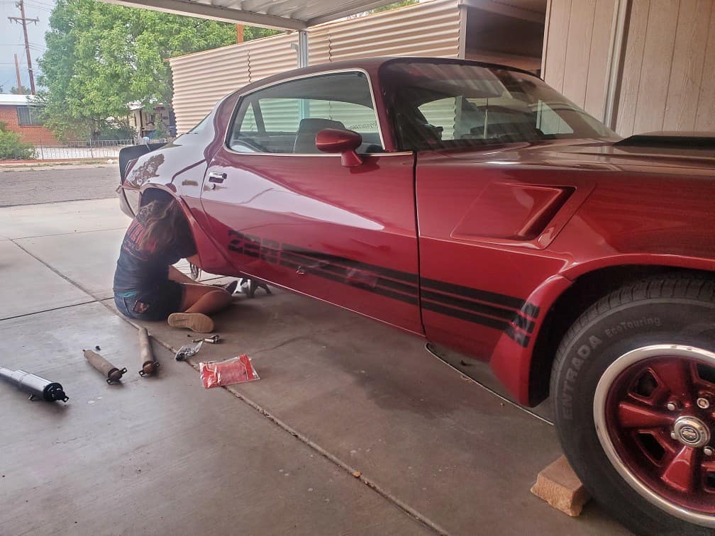 They fixed the starter wires and drove the Z28 home. After some minor mechanical work, Crystal’s first big job was to repair the leak that was coming from the Turbo Hydramatic 350. She didn’t have a lift, so with the help of her brother and dad, they removed the transmission with the car just on jack stands. She described it as “a very interesting experience.”
