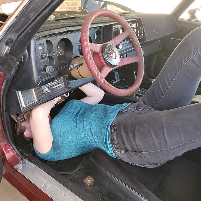 Crystal really enjoys working on the Camaro. I was struck by the photos she’s posted to Instagram showing her up inside wheel wells, underneath the dashboard, and stretched across the engine to do the work that needs to be done. “I try to do as much as I can by myself,” she said.