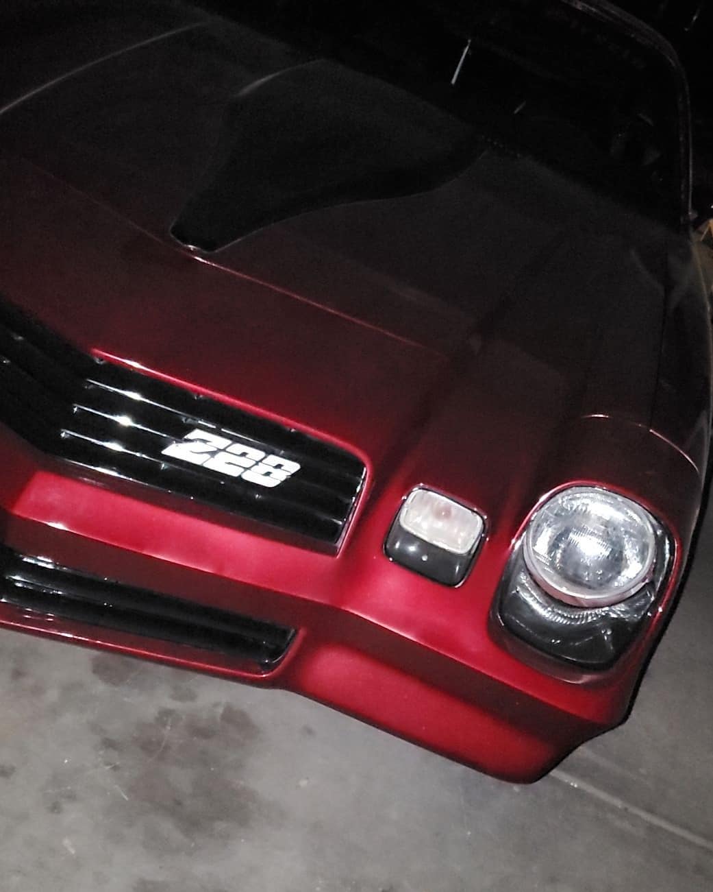 Another problem with the paint was the Camaro was completely red when Crystal got it. Completely. Everything was the same color and Crystal didn’t like it. She got a can of black spray paint and painted the spoiler and hood scoop grill and headlight bezels. That helped the looks immediately, and then Ruby got a new coat of new paint, with a color very similar to the original.