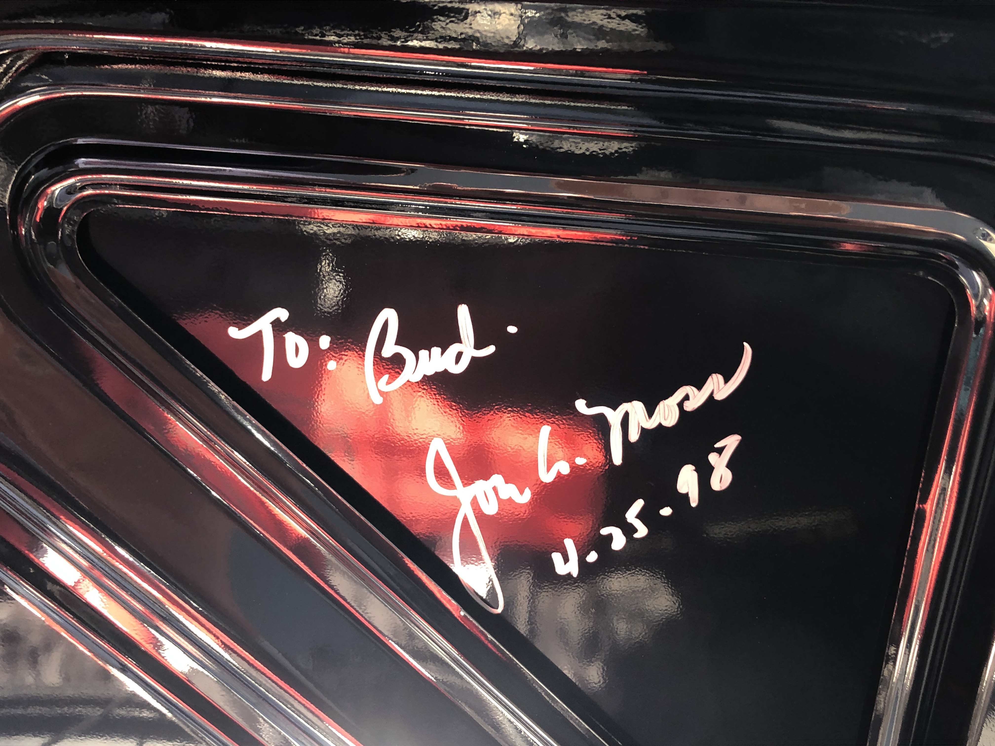 “I met him at a car show,” Bud told me. “It was an Impala meet – 200 Impalas showed up.” Bud had a paint pen with him, and got Moss to sign his Impala on the inside of the trunk and in the engine compartment.