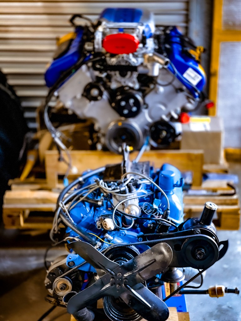 The motors the Ford dealer had for sale were intended for Ford’s production line, so they came with many of the accessories needed to drop the engine into a car. Since the Boss is much larger than the 289 that was in the Fairlane, Jason has also ordered additional components from an Aussie supplier to open up some space in the engine bay and help complete the conversion. The picture below shows how much bigger the Boss is.