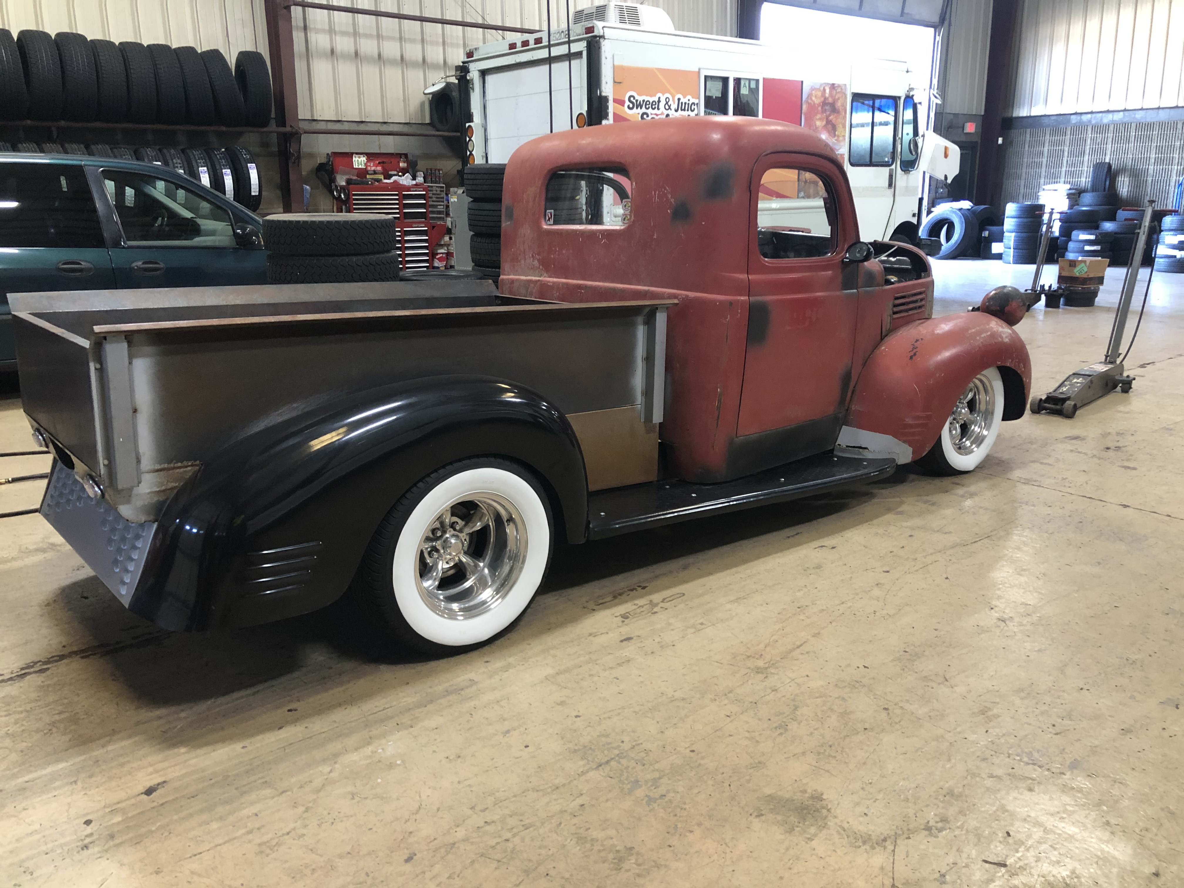 The end result of the chassis and drivetrain work is a 1945 pickup that drives and handles really well. “Amazing,” is how Hunter describes it. “It’s very drivable. It’s nothing fancy underneath. Basically if you put a V8 and a 5-speed in an S10 that’s what it is, with a hot rod body on top.” And one more advantage of the late model running gear is that when he needs a part, he can usually find it at the local auto parts store.
