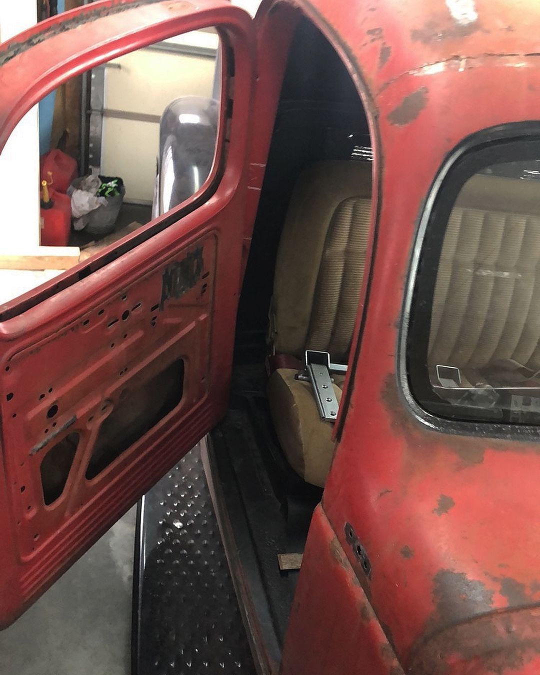 The Dodge’s current bench seat is from the third row of a Chevy Tahoe. But that’s coming out soon. Hunter’s got a friend who has started his own upholstery shop and Hunter’s going to have him build a custom bench seat for the Dodge. That’ll make the Dodge’s interior look great, and be a good promotion for his friend’s shop.